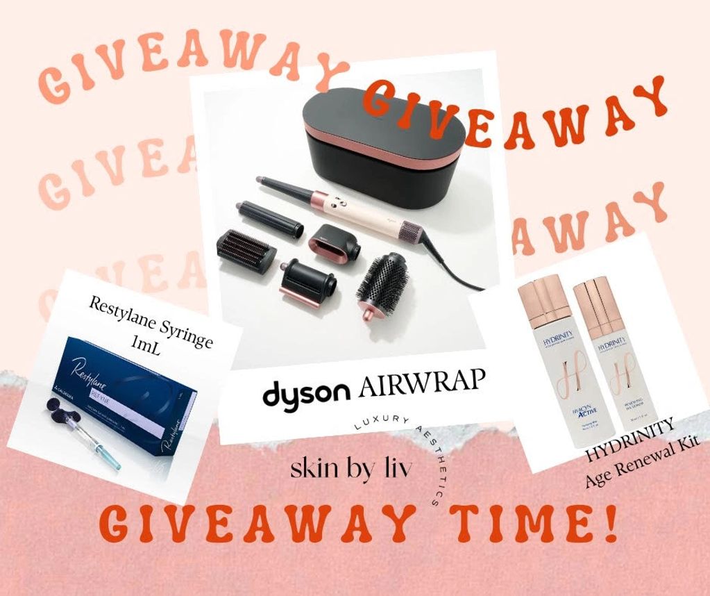 One lucky winner will receive: Dyson Airwrap™, 1ml Syringe of Restylane®, Hydrinity Age Renewal Kit, Hyacyn Active Purifying Mist, and Renewing HA Serum.